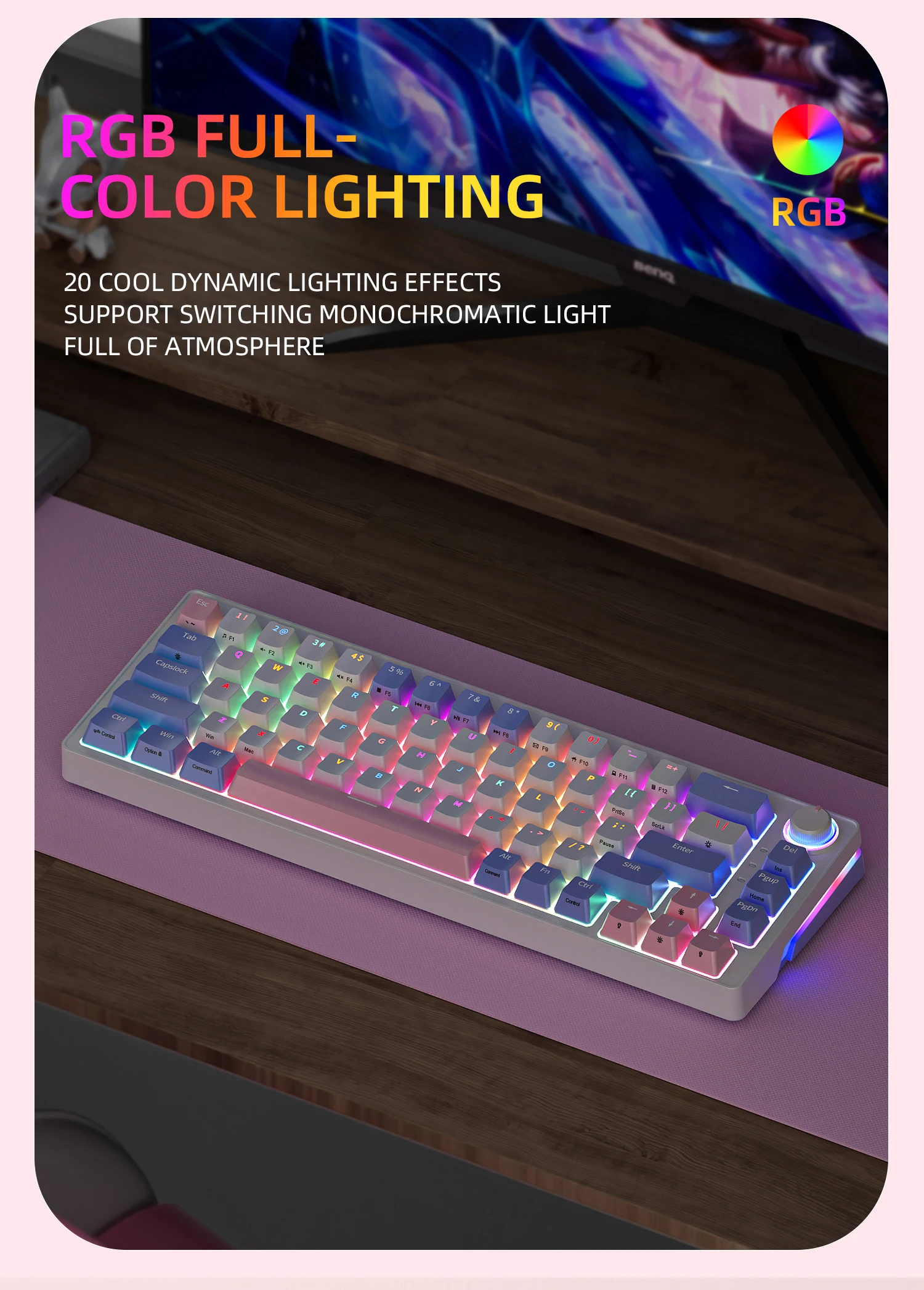 - Light Function: 20 color RGB + Backlit